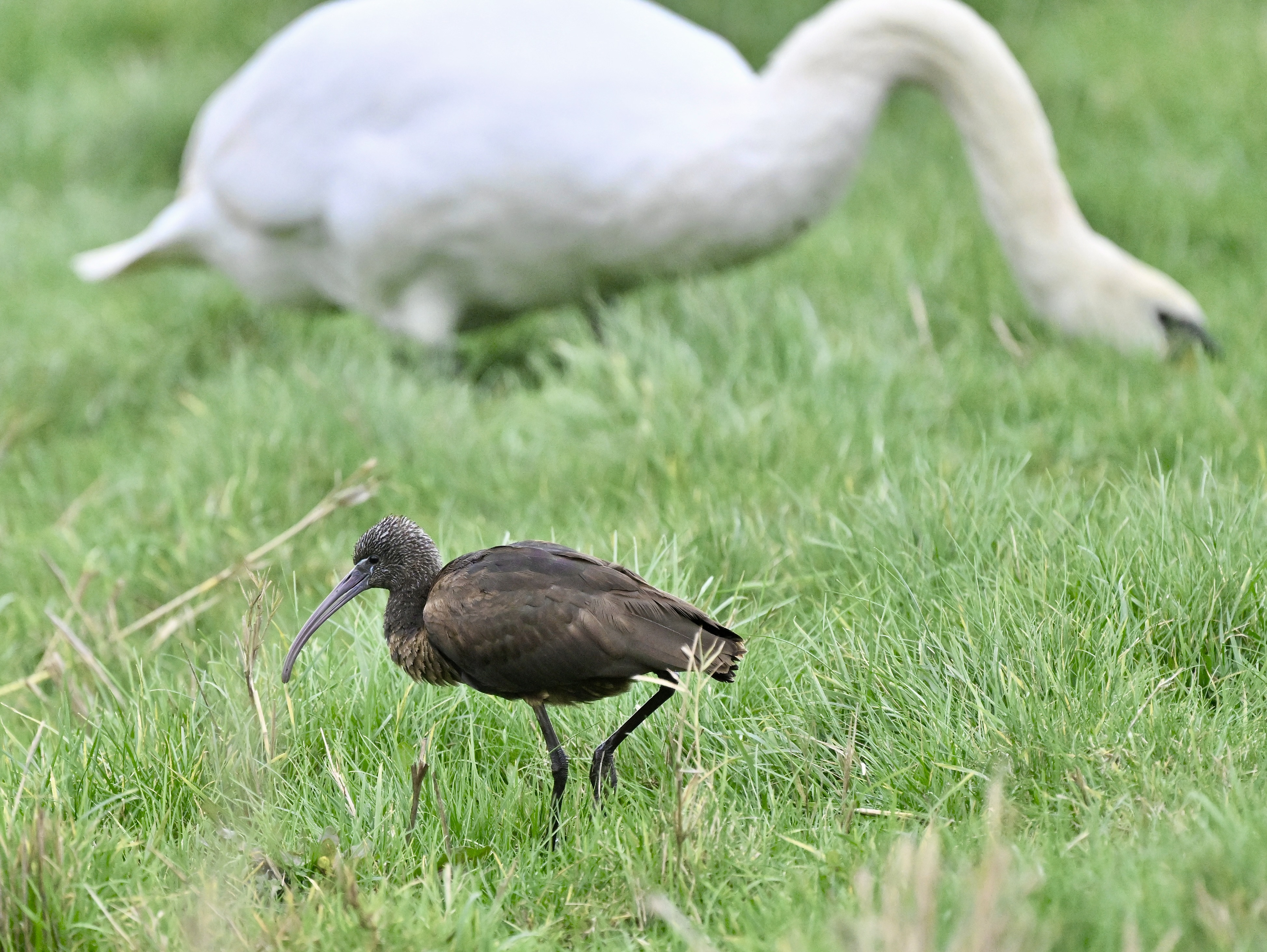 3 Glossy Ibis (Flew from the East Bank & over Babcock's Hide, landing in the ditch separating Watling Water from Swan Pool. Flew west at 14:05.) ,