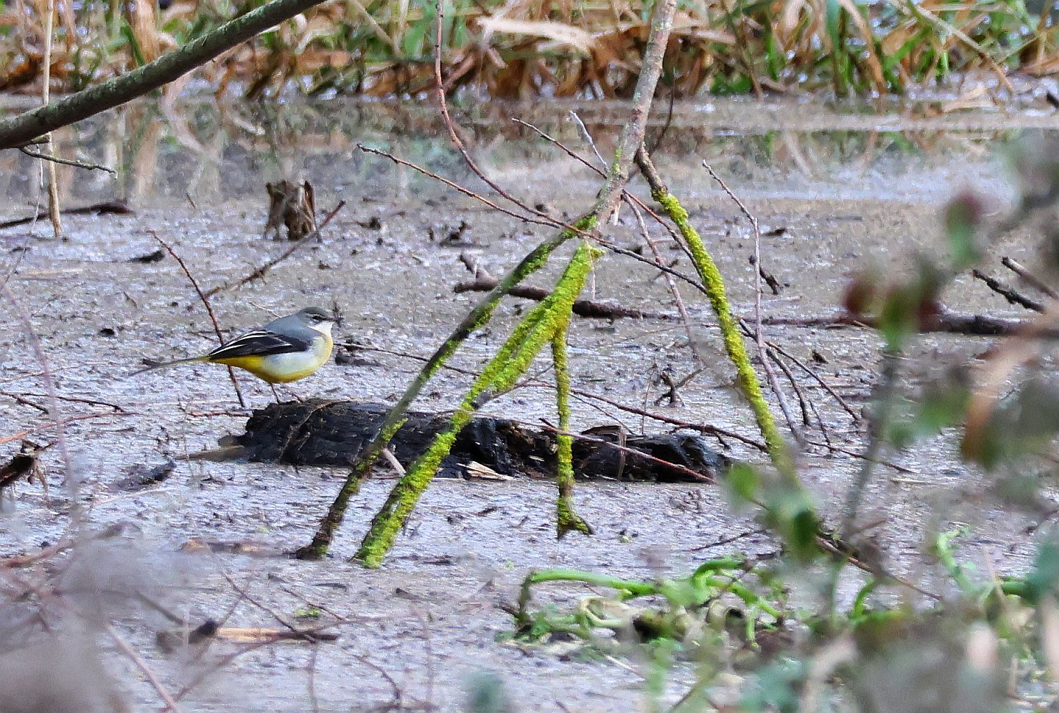 1 Grey Wagtail (On flooded meadow by Glaven ford) ,