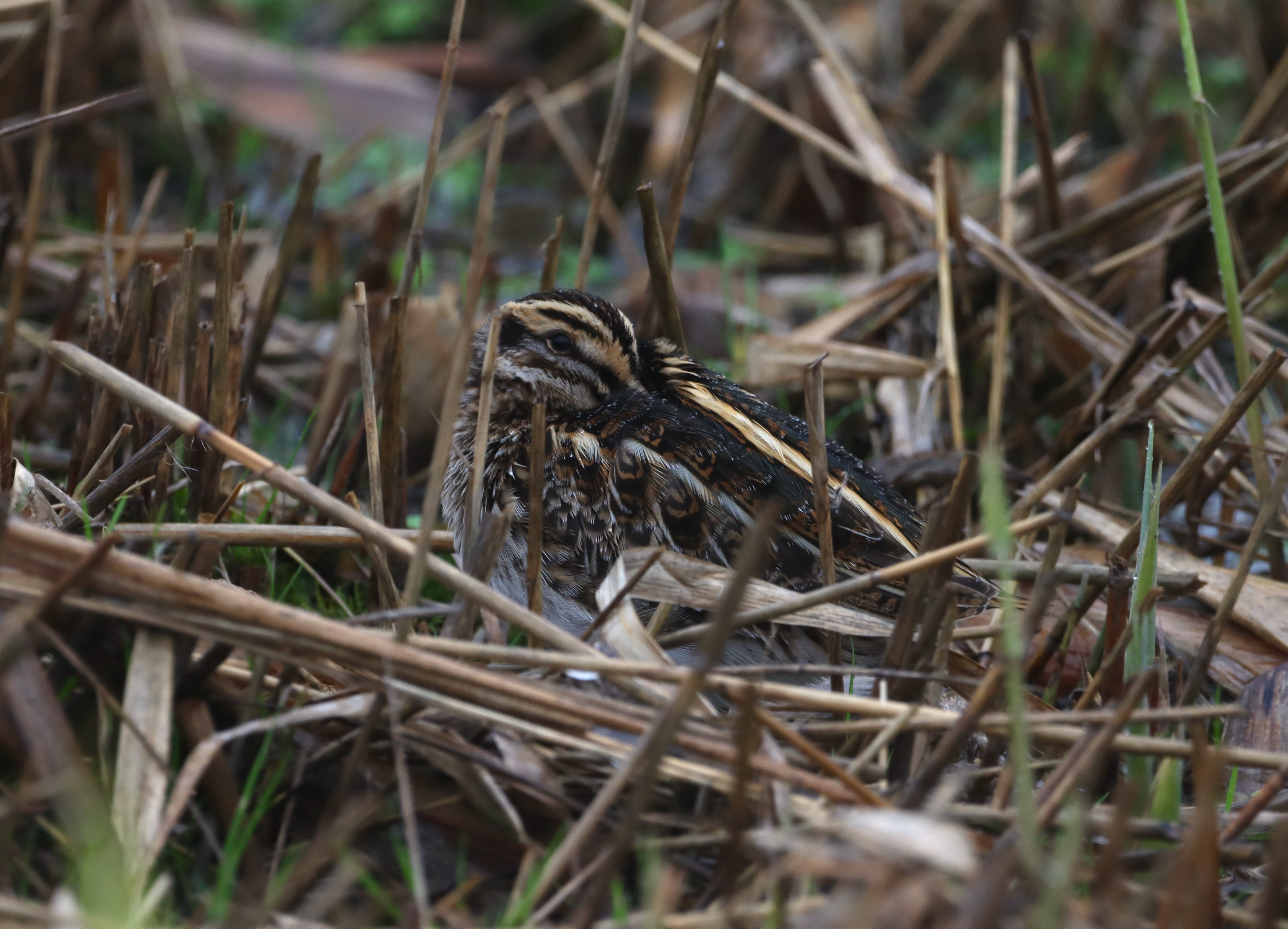 1 Jack Snipe (Very close to LHS of Bishops Hide and still cryptically camouflaged. A lot of bobbing which actually made one feel queesy! A Common Snipe walked passed allowing fantastic comparison of features.) ,