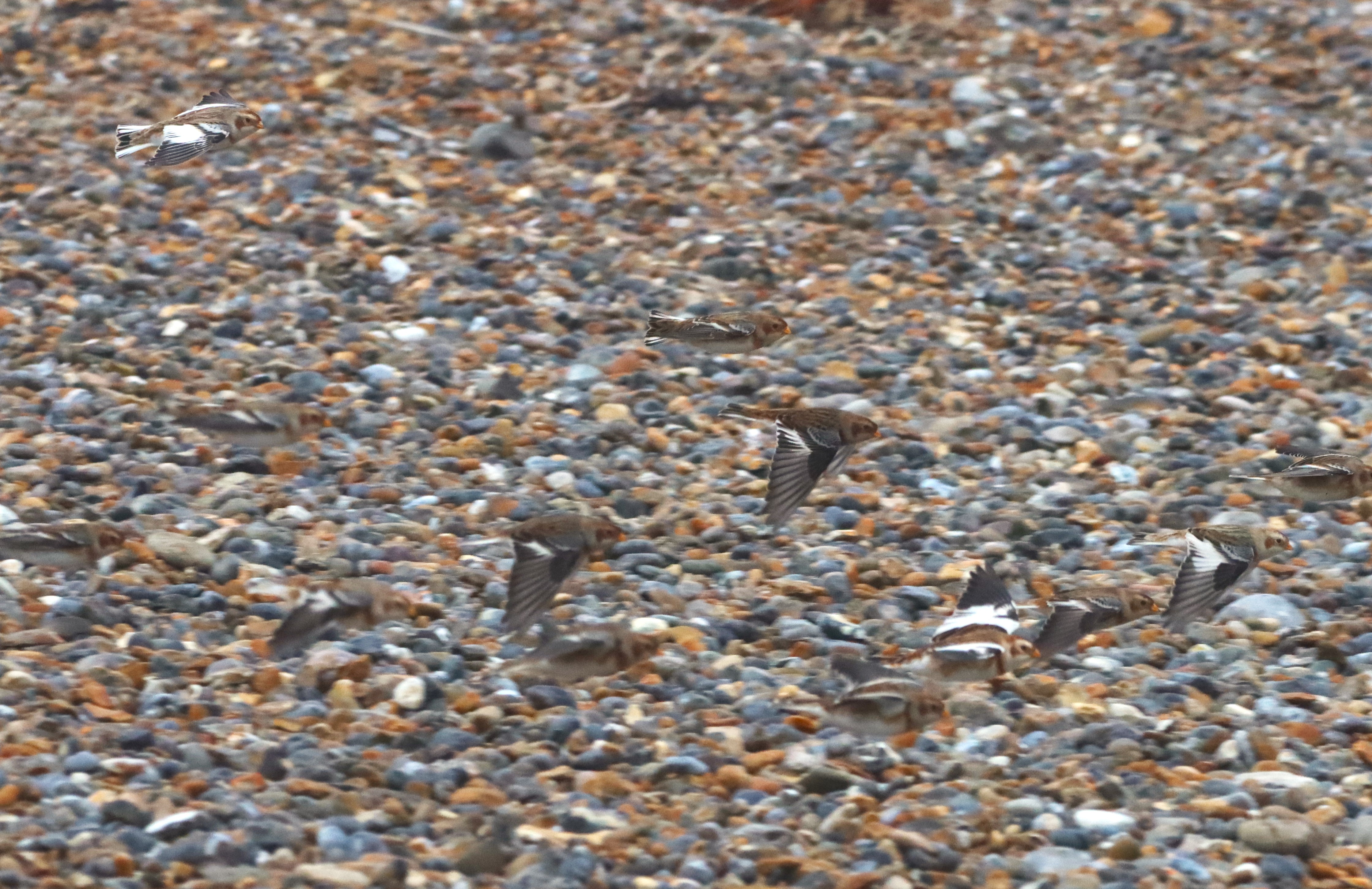 36 Snow Bunting (on shingle ridge then flew west) ,